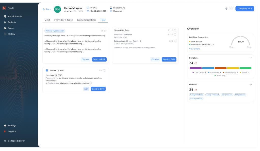Avodah Med is a clinical platform designed to streamline appointment documentation, improve clinician efficiency, and ensure structured, compliant medical data output. The platform was built with direct input from providers and optimized for HIPAA compliance, accessibility, and ease of use across desktop and mobile.