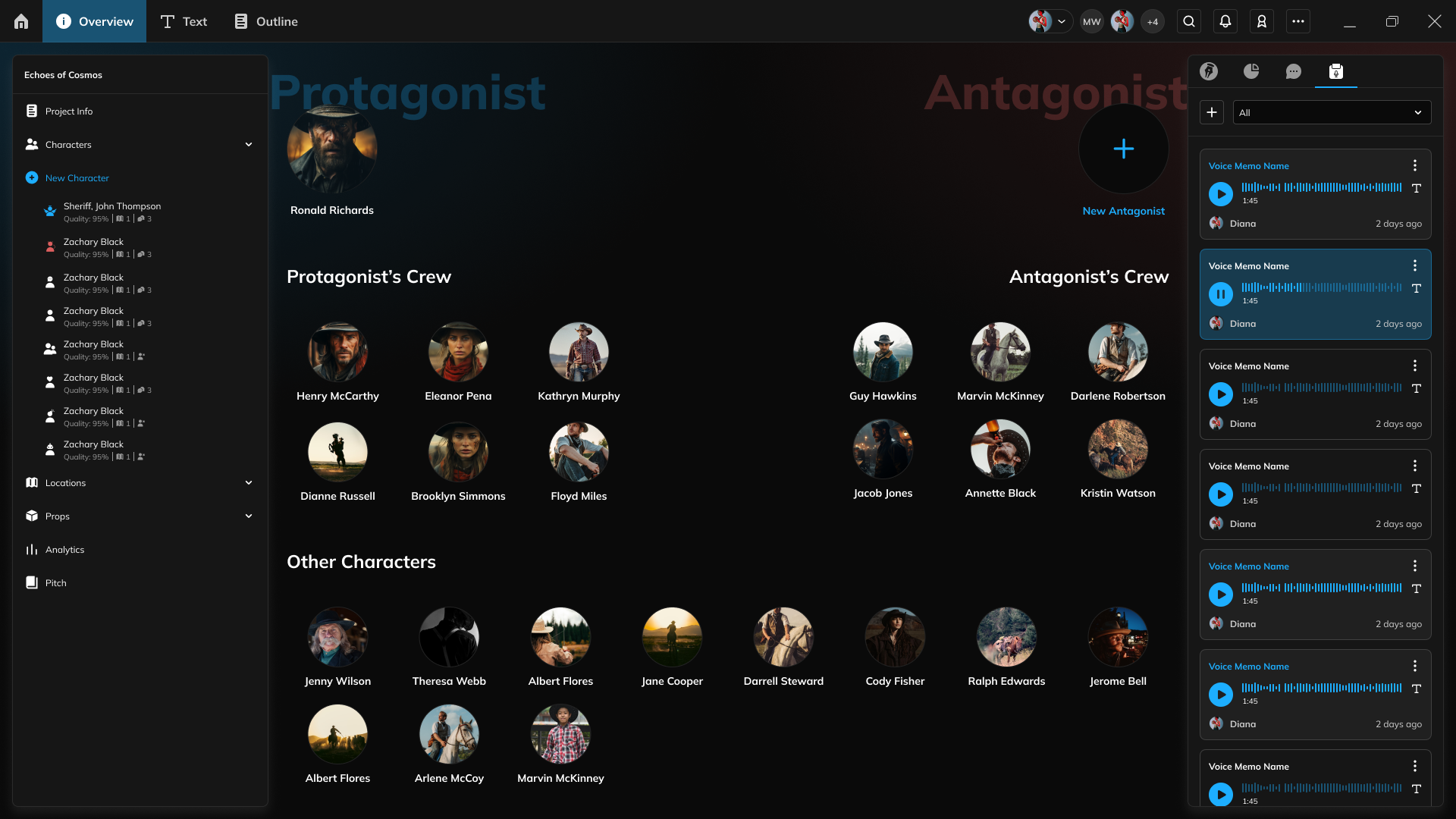 Goals: Organize scenes, keep track of characters & locations