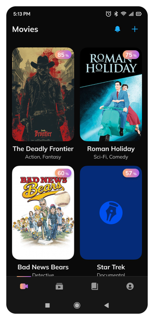 This screen showcases the user’s personal project gallery. Each tile includes: