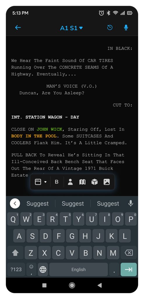 💡 Design intent: Bring professional-grade screenplay writing to mobile while making AI support feel seamless and natural, not intrusive.