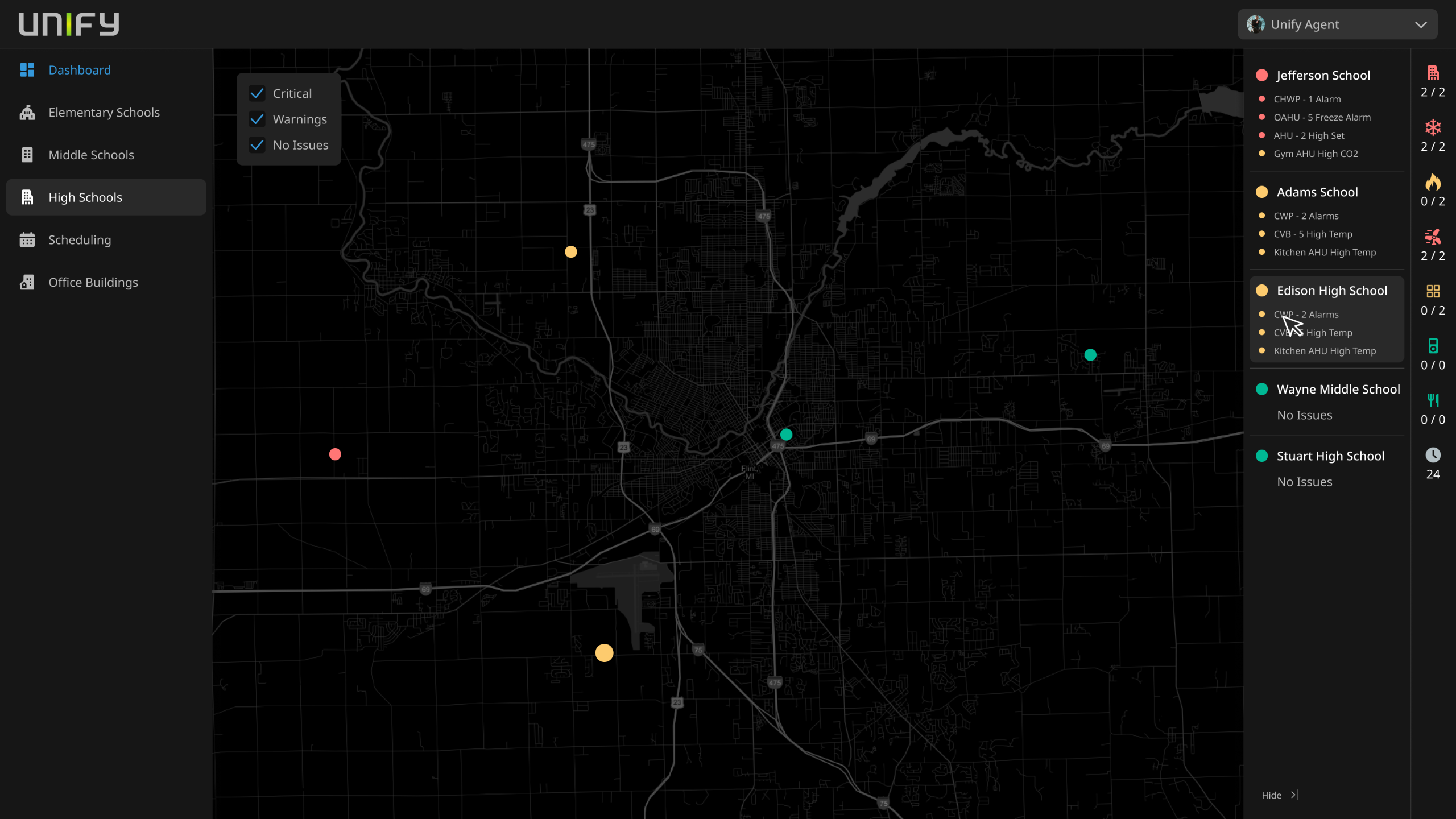 Multi-School Filtering: Easily switch views between elementary, middle, and high schools to focus on priority sites